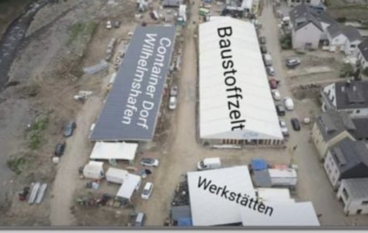 Um den Wiederaufbau kurzfristig zu unterstützen, gründete Wilhelm Hartmann ein über 1.000 Quadratmeter großes Baustoffzelt. Ein freiwilliger Helfer, mit Spitznamen Kaiser genannt, übernahm die Leitung vor Ort, damit Hartmann weitere Hilfseinsätze u.a. in Dernau, Kreuzberg und Bad Neuenahr-Ahrweiler koordinieren konnte. Das Baustoffzelt Kaiser war nach kurzer Zeit mit baumarktähnlichen Abteilungen prall gefüllt mit Sachspenden zum Wiederaufbau, die aus dem gesamten Bundesgebiet von Privatpersonen, Vereinen und Firmen gespendet wurden. Den Gesamtwarenwert bezeichnet Hartmann auf defensiv geschätzt über acht Millionen Euro bis Ende Juli 2022.